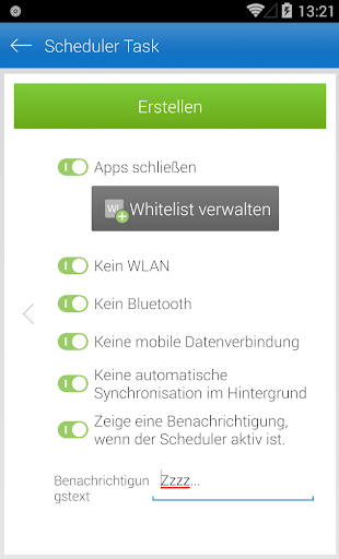 Ist die Batterie in Ihrem Smartphone häufig und zu schnell leer? Mit Scheduler verlängern Sie die Batterie-Laufzeit Ihres Smartphones flexibel und nachhaltig. Die App deaktiviert für frei einstellbare Zeiträume nach Bedarf Hintergrund-Apps, die Synchronisierung sowie Datenverbindungen und reaktiviert die betroffenen Funktionen außerhalb dieser Zeiten automatisch.