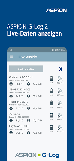 - Zusätzlich Auslesen per BLE: Über eine Distanz von mehreren Metern – für ASPION G-Log 2 Datenlogger im blauen Gehäuse.