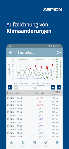 - Klimadaten (Temperatur, Feuchtigkeit) und eine Live-Ansicht für ASPION G-Log 2