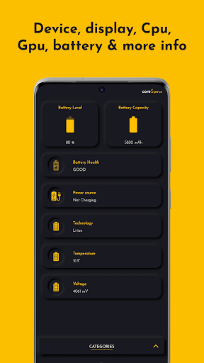 ⭐ Anzeige - Bildschirmauflösung, Bildschirmgröße, Höhe, Breite, Bildschirmdichte und GLES -Version.Kapazität, Gesundheit, Stromquelle, Technologie, Temperatur und Spannung.