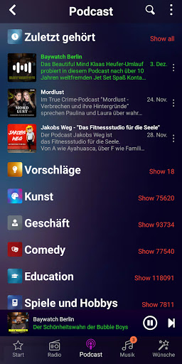 Podcasts ein breites Spektrum von Unterhaltung ab. Mit der selbst aktualisierenden Podcast-Datenbank kannst du tausende Podcasts mit ihren Episoden kostenlos abonnieren.