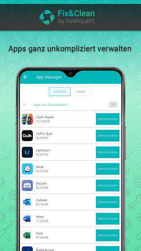 Verlieren Sie gelegentlich den Überblick über alle auf dem Telefon installierten Apps? Zeigen Sie eine Liste aller installierten Apps inklusive des von ihnen belegten Speicherplatzes an und entfernen Sie alle Apps, die Sie nicht mehr brauchen.