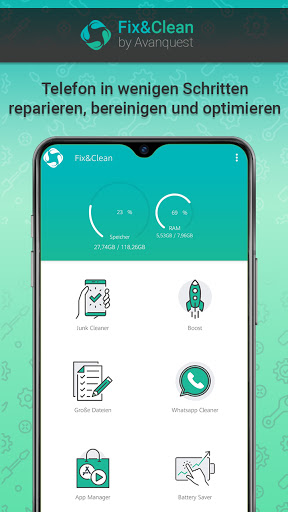 Avanquest, der Entwickler beliebter Software zur Bereinigung von PC und Mac, bietet jetzt die ultimative Bereinigungs-App für Ihr Android-Gerät. In nur wenigen Minuten können Sie sicher Junkdateien entfernen, Arbeitsspeicher freigeben und die Akkulaufzeit optimieren.