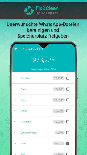 Wenn Sie Whatsapp häufig benutzen, belegen diese Dateien sehr schnell mehrere GB an Speicherplatz. Geben Sie Speicherplatz auf dem Telefon frei, indem Sie Bilder, Videos, Sprachnachrichten, Sticker, animierte Gifs und mehr von Whatsapp entfernen.