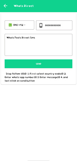 1) Öffnen Sie die direkte Chatoption aus der Wege-Web-App. 2) Wählen Sie den Ländercode aus, geben Sie Nummer und Textnachricht ein. 3) HIT-Taste Senden.