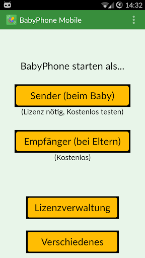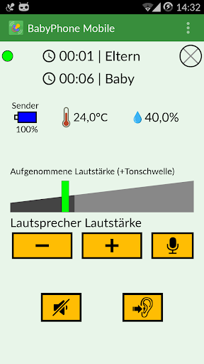 1.) App auf Ihrem ersten Smartphone oder Tablet installieren und als Sender starten (Babygerät)