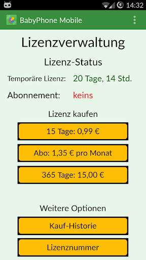 Zum Testen können Sie die App beliebig oft kostenlos starten. Für den Normalbetrieb müssen Sie eine Lizenz erwerben. Ohne Lizenz startet die App im Testmodus: Alle Funktionen der App können genutzt werden; jedoch wird die Verbindung aller 30 Minuten automatisch getrennt.