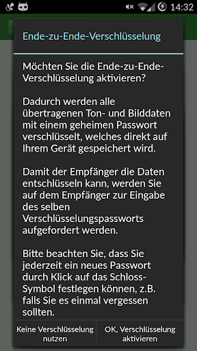 • Ende-zu-Ende-Verschlüsselung: Audio- und Videodaten mit selbstgewähltem Passwort verschlüsseln