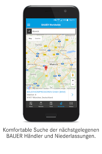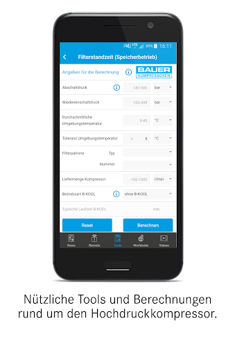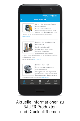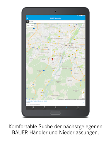 Die BAUER KOMPRESSOREN APP (B-APP) bietet Features wie produktspezifische News, Videos, eine integrierte Händlersuche und Berechnungstools rund um das Thema Druckluft. Zudem ermöglicht die B-APP die Fernbedienung und Überwachung von BAUER Kompressoren mit der neuen BAUER Steuerung B-CONTROL MICRO.