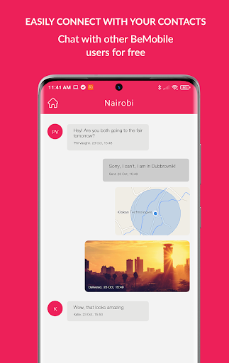 • Genießen Sie Peer to Peer-Nachrichten, ruft zwischen Bemobile-Telefonnummern an.