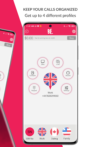 Durch Hinzufügen von bis zu 4 virtuellen Telefonnummern Ihres Telefons können Sie Ihre Arbeit, Ihr Familien- und Dating-Leben trennen. Wir glauben daran, Kontrolle zu haben, wie Sie sich mit den Menschen um Sie herum verbinden, und Bemobile bietet das! Möchten Sie gerne Privatsphäre und Kontrolle Ihrer Kommunikation genießen, während Sie Ihr tägliches Leben durchmachen? Fühlen Sie sich unwohl mit Ihrer persönlichen Telefonnummer? Möchten Sie ein Datum erfüllen, ohne Ihre persönliche / Arbeitsnummer zu teilen? Sind Sie es leid, Simcards jedes Mal von Ihrem Telefon umzuschalten, wenn Sie eine Telefonnummer ändern müssen? Nun, hör auf, Stress zu betonen und eine Bemobile-Nummer zu bekommen !!!