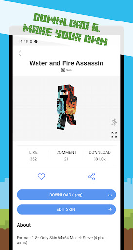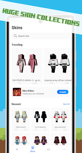 - Die beliebtesten und seltensten Skins für Minecraft, auch zusätzliche Funktionen, 3D-Hautvorschau und 360-Grad-Rotation.stehlen es)