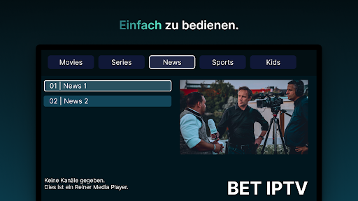 Erleben Sie die Zukunft von IPTV mit BET IPTV, dem ultimativen Mediaplayer, der Geschwindigkeit, Zuverlässigkeit und Premium-Qualität in einem schlanken Paket vereint. Mit seinem schönen Design und robusten Funktionen bietet BET IPTV ein nahtloses Unterhaltungserlebnis wie kein anderer.