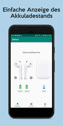 Mit PodAir – AirPods Battery Level können Android-Benutzer den Akkuladestand ihrer Apple AirPods und Hüllen einfach und unkompliziert anzeigen.