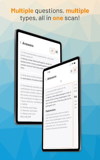 Introducing Question Master, your ultimate homework companion. Snap a photo of any worksheet, and we'll convert it into an easy-to-read list of questions, answers, and explanations. Submit a photo of your notes and you'll get a nice list of questions and answers for you to study from. Forget about expensive tutors, embrace the convenience and affordability of on-demand homework assistance. With support for multiple-choice, short answer, and extended response questions, mastering your homework has never been this simple. Scan entire worksheets at once with no cropping needed! Download Question Master now and revolutionize the way you study!