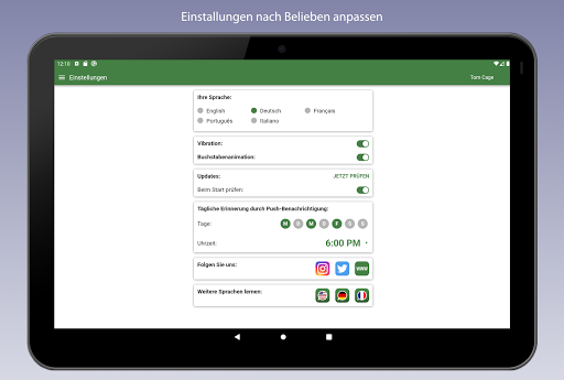 - OFFLINE Nutzung möglich: Sie brauchen lediglich eine Verbindung mit dem Internet, wenn Sie die App das erste Mal benutzen, um neue Wörter herunterzuladen, aber die App kann sonst problemlos offline benutzt werden.