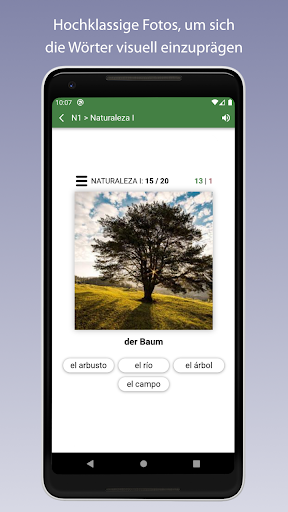 - Hochklassige Fotos, um sich die Wörter visuell leichter einzuprägen.