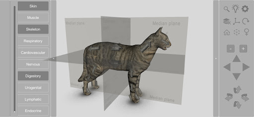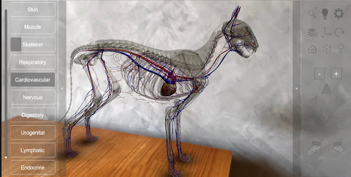 Die 3D-Cat-Anatomy-App ist ein interaktives Modell, das es ermöglicht, dass die tierischen internen Systeme anzusehme und manipulierte Schichtdurch Ebene oder gleichzeitig mit anderen Schichten auf verschiedenen Zoomstufen.Einzelne anatomische Strukturen können hervorgehoben und eine Bildunterschrift angezeigt werden, oder sie können entfernt werden, um die Anzeige tieferer Strukturen zu ermöglichen.