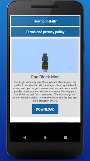 In der App ein Block für Minecraft starten Sie in einem einzigen Block, und verwenden Sie alle Ihre Überlebensfähigkeiten, müssen Sie Materialien gedeihen, Material sammeln und schließlich den Drachen töten.