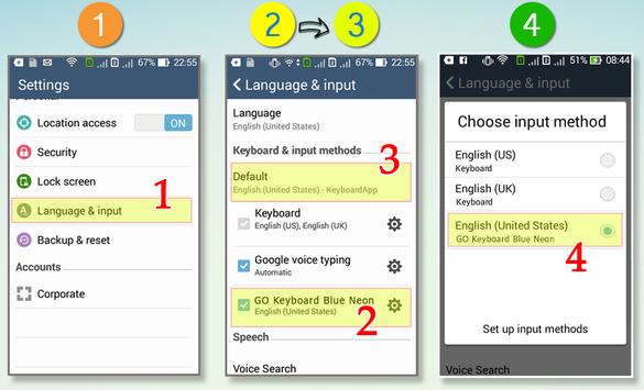 - Click to select Default English (United States) - GO Keyboard Blue Neon.