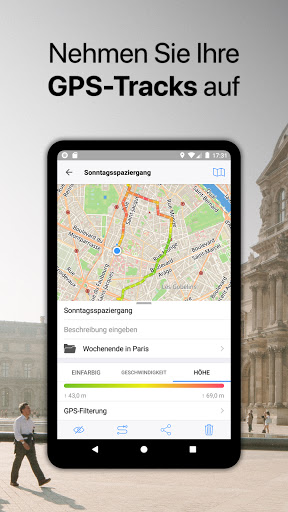• Zeichnen Sie Ihre Ausflüge auf, auch wenn die App im Hintergrund läuft.