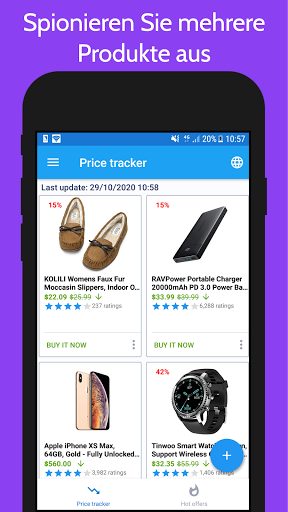 - Benachrichtigung wird angezeigt, sobald die App einen Preisverfall feststellt.