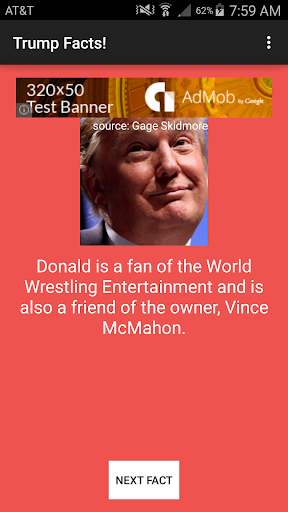 Did you know that Donald Trump's brother was an alcoholic? Well, now you do! Check out this great app to see this fact and 100 more about Donald Trump. Whether you're an avid fan of Mr. Trump or an angry opposer of him, everyone can use a little bit more knowledge. Learn as much as you can about Mr. Donald Trump's personality, life, family, and more TODAY!!