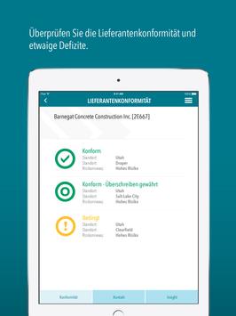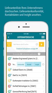 Mit ihrem Smartphone oder Tablet haben Sie die Möglichkeit die Lieferantenkonformität zu prüfen, etwaige Lieferantendefizite zu identifizieren, Lieferanten zu kontaktieren, die Konformitätsübersicht anzusehen, die Insight