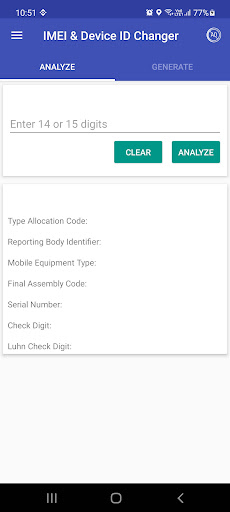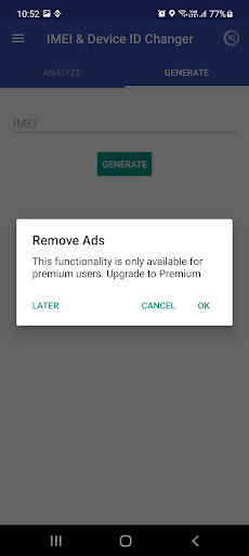 Imei-Wechsler- und Geräte-ID-Wechsler ist eine App, mit der die IMEI-Nummer generiert, analysiert, geändert werden soll. Hat auch Premium-Funktionen, auf die Sie zugreifen können, wenn Sie bezahlen.