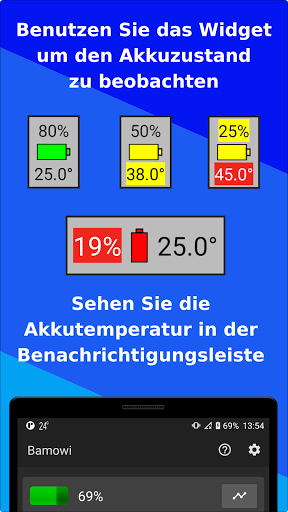 Beachten Sie, dass Bamowi nicht den Zweck hat, den Akkuverbrauch zu senken oder zu optimieren. Dafür gibt es andere Apps. Trotzdem hat Bamowi einen sehr geringen Energieverbrauch, bei allen unseren Testgeräten liegt er unter 0,5%.