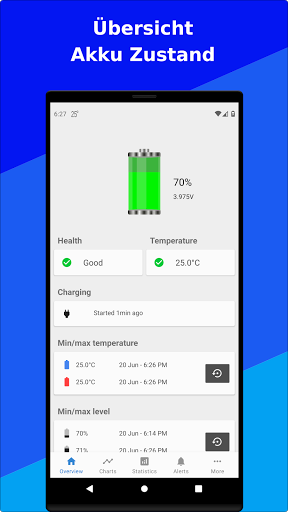 Verhindern Sie, dass der Akku Ihres Telefons überhitzt oder unterkühlt indem Sie eine Benachrichtigung erhalten wenn die Temperatur einen Grenzwert überschreitet.