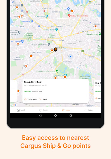 Mit Cargus Mobile App können Sie Ihre Pakete problemlos verfolgen und Ihre Lieferungen an einem Ort alle verwalten. Sie können den nächstgelegenen Cargus Ship & Go Point für Parcel-Drop Off oder Collection - direkt auf Ihrem Smartphone finden. Laden Sie die Cargus Mobile App herunter, um anzupassen, wann und wo Sie Ihre Pakete erhalten möchten.