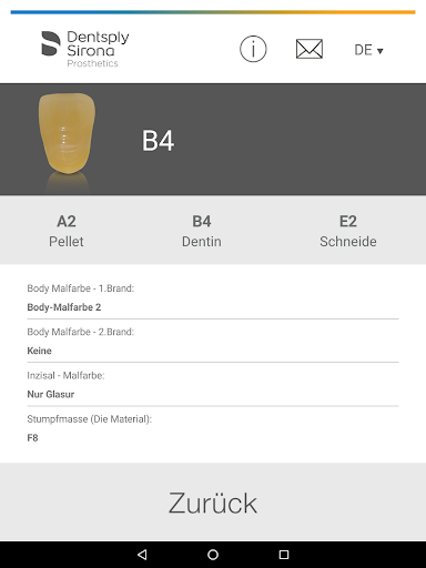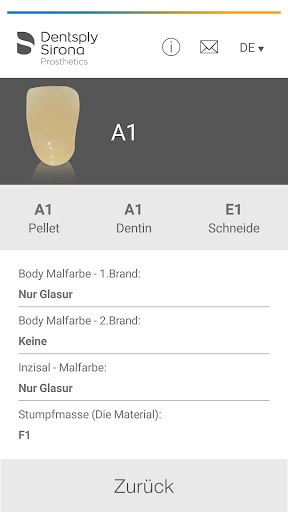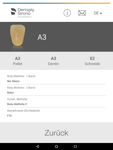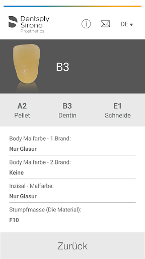 Einfach in der App die zu erzielende Zahnfarbe auswählen und sofort werden die entsprechenden Keramikmassen aufgelistet. So erhalten Sie reproduzierbare Ergebnisse für Ihre Patienten.