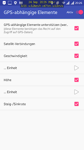 : Geschwindigkeit, Höhe, Steig-/Sinkrate und Satellitenzahl, Koordinaten.