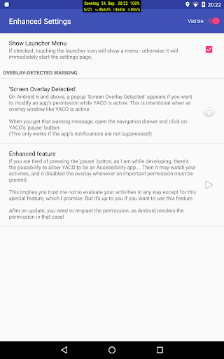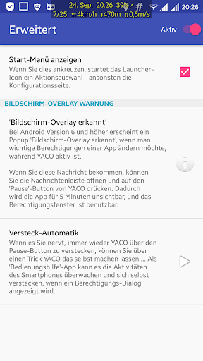 This app uses Accessibility Services (wenn man die Auto-Hide -Unterstützung einschaltet)