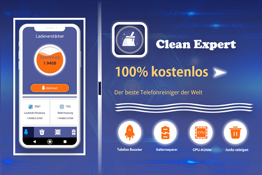 Laden Sie einfach die erstklassige Reinigungs-App herunter und genießen Sie sie! Clean Expert: Telefonreiniger für Android! Steigern Sie JETZT die Leistung Ihres Android-Handys!