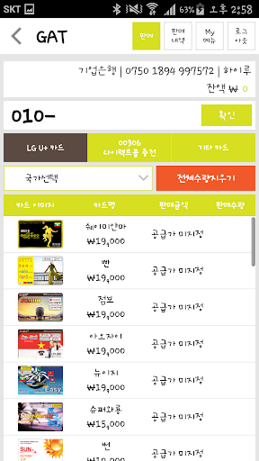 GAT는 SKT,KT,LGT와 알뜰폰(mobing,M mobile,free T... 등등)의 선불전화 충전카드(PPS)와 국제전화선불카드 등 각종 선불상품을 국내,국외국인들에게 쉽고 빠르게 저렴한 가격으로 충전할 수 있는 솔루션 입니다.