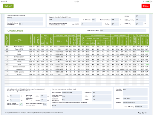 Pro Certs is specifically designed from the ground up for tablets to make full use of the larger screen sizes which can display each certificate section on the screen all at once, the larger screen size also allows us to display the DB circuits schedule and test results on one screen (therefore no fiddly popup screens to input data).