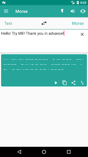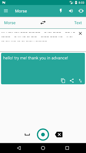 • Morse in Text und umgekehrt in Echtzeit übersetzen.Ergebnisse und fügen Sie alles als Eingabe