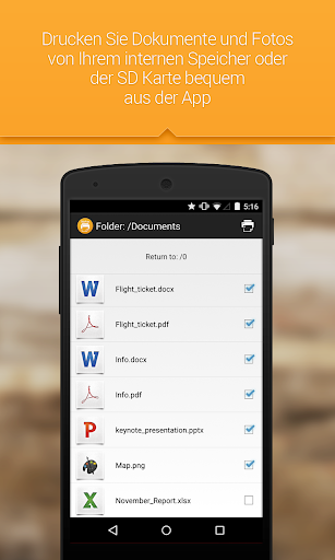 • Wählen Sie Dokumente und Fotos zum Drucken bequem in der App aus