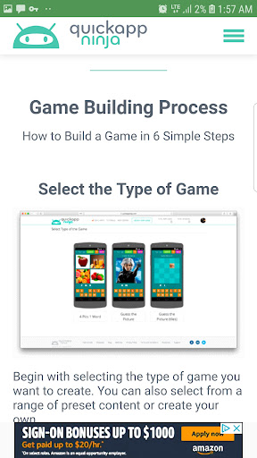 Quick App Ninja ist ein Spiel-App-Builder mit Vorlagen, mit dem Sie Ihre eigenen Quiz-Spiele problemlos erstellen können.