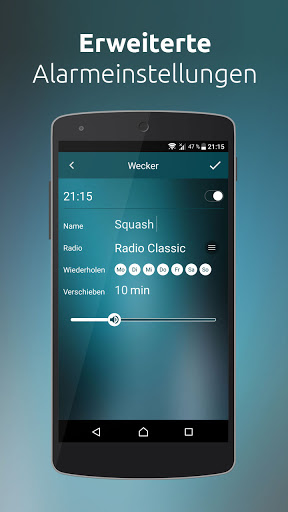 - Mehrere und wiederkehrende Alarme mit vorgegebener Lautstärke, Radiosender und Name