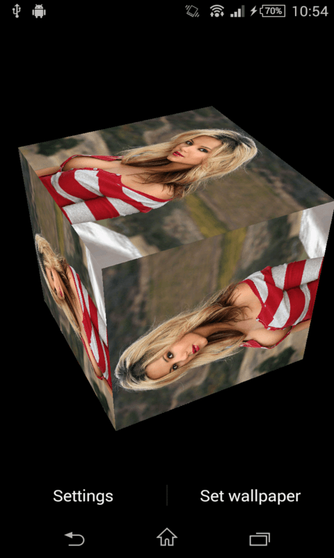 Ashlynn Brooke Live Wallpaper features a rotating 3D photo cube showing the sexy and hot pictures from selected image. This contains many HD quality hot girl pics . Select your favorite sexy image from setting /change image to display in rotating cube. This is only for android and totally free. You can rotate Ashlynn Brooke LWP by swiping through your home screens - scene will change its rotation according to touches. Features- ----------------------------- This contains many HD quality Hot and sexy pics. Manually change the cube images by the click change image. Increase or decrease brightness, if transparent Enabled. Adjust the size of the 3D cube by click of Cube Size. Many different hot Images choice are available. DISCLAIMER--- Its a free android app thus it contains some ads, but it doesn't contain any push ads or home screen ads