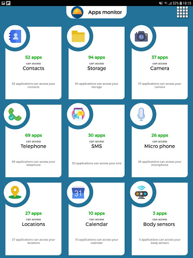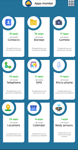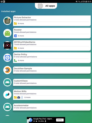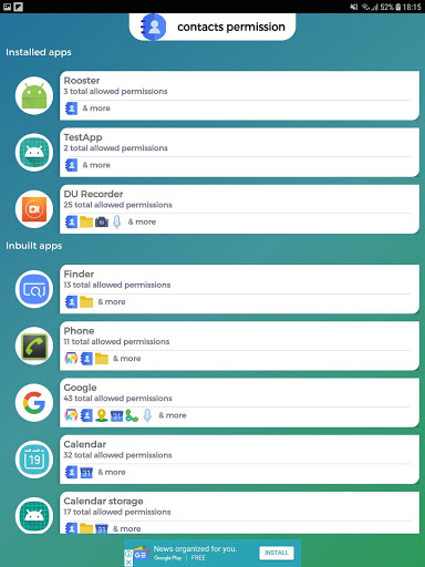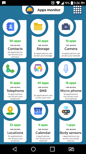 App will show you the apps in your device that can access the following: