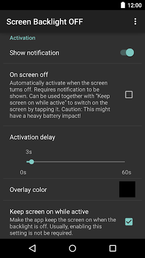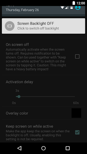 ● Benachrichtigung, um den Bildschirm Hintergrundbeleuchtung schnell auszuschalten