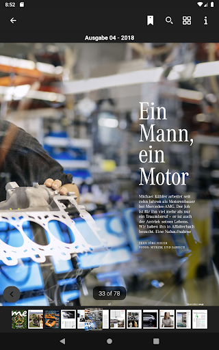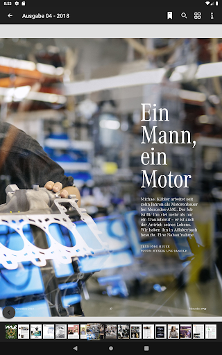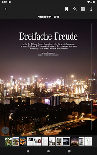 In dieser App können Sie die drei offiziellen Mercedes-Benz Magazine Mercedes me, She’s Mercedes, Mercedes-Benz Classic und viele mehr lesen. Die Ausgaben des Magazins können einzeln heruntergeladen werden und ohne Internetverbindung gelesen werden.