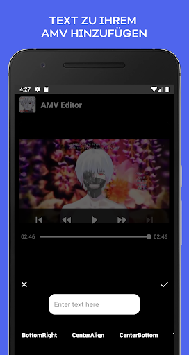 Anime Music Video Editor & Creator ist ein Tool, mit dem Anime-Videos und -Audios bearbeitet oder konvertiert werden können. Sie können AMV-Datei auf Ihrem Handy bearbeiten! Sie können die neuesten AMVs auf Ihrem Handy bearbeiten, konvertieren und erstellen! Der einfachste Weg, AMV zu bearbeiten! Schneiden Sie Anime-Videos, fügen Sie dem Video Ihre Musik hinzu und erstellen Sie Ihr eigenes AMV!