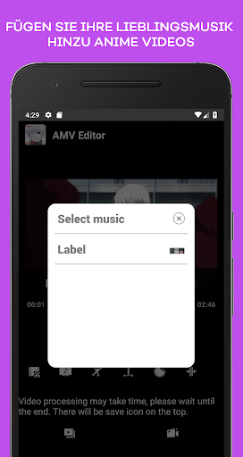 Hinweis: Diese App ist nur ein Werkzeug. Es ist keine offizielle App. Sie können keine Videos oder Musik über diese App herunterladen. Sie können nur AMVs bearbeiten, die sich auf Ihrem Telefon befinden.