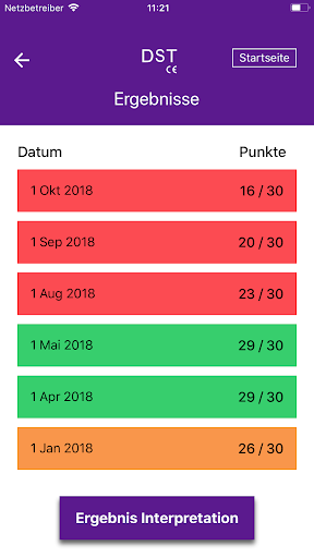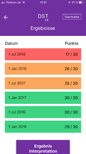 - Möglichkeit, die Testergebnisse per e-mail zu versenden oder auszudrucken (z.B. für den Arztbesuch)