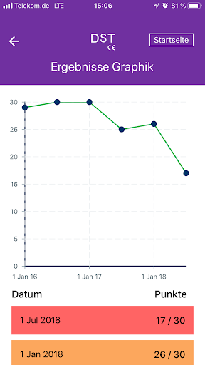 Der DST (Demenz Screening Test) ist der einzige von den Gesundheitsbehörden als Medizinprodukt anerkannte Demenztest. Der DST findet auch Demenz Frühformen sehr effektiv und kann die unterschiedlichen Schweregrade bzw. Stadien einer Demenz zuverlässig unterscheiden. Er ist daher sowohl für die Demenz Früherkennung / das Demenz Screening zugelassen, als auch für die Verlaufsbeobachtung des Schweregrads bzw. die Therapiekontrolle geeignet.